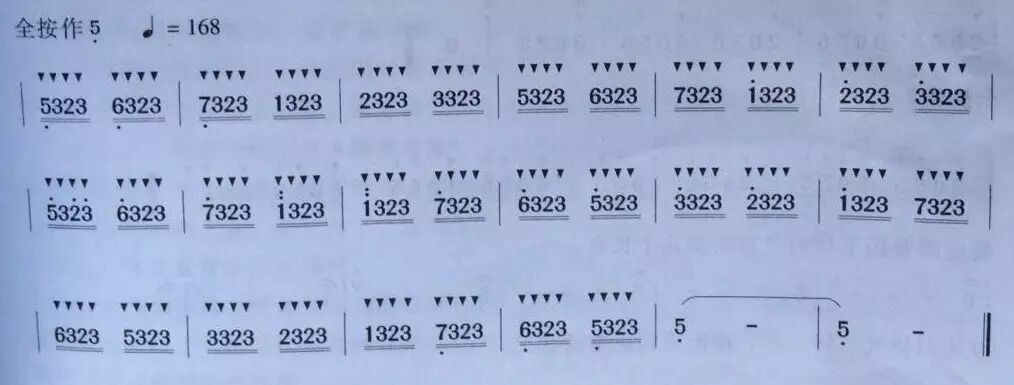 每日基训时,吐音应以双吐为主进行训练,训练双吐时着重练习速度,与高低幅度跳动大的练习曲。如: