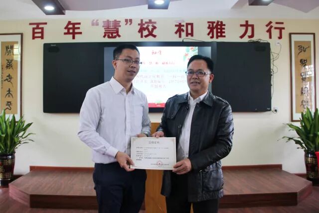 紧接着是课题开题报告会。王敬波副书记为《中华优秀传统文化教育“一科一品”校本课程的开发》开题报告会宣读并颁布立项证书。