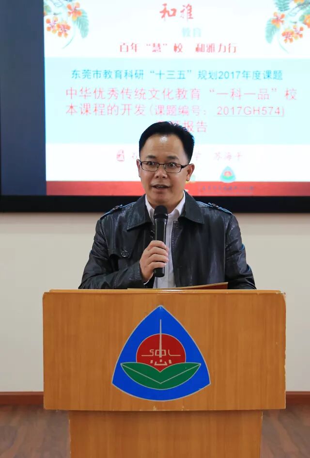 1月4日下午,石龙镇中心小学国学教室揭牌仪式暨东莞市教育科研“十三五”规划2017年度课题《中华优秀传统文化教育“一科一品”校本课程的开发》开题报告会在新建成的镇内小学首间国学教室顺利召开。