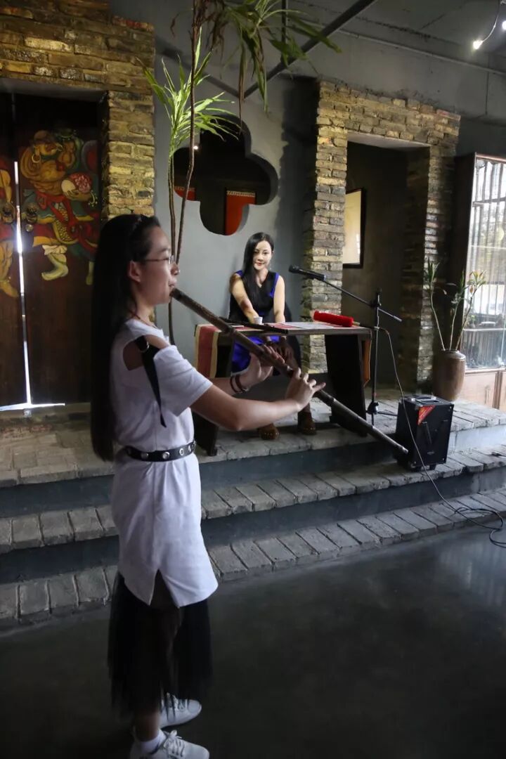 箫友见面会是在极具禅意和雅致意境的一品禅舍举行的。在活动中,陈悦老师分享了自己从艺的一些历程与感受,遇到的困难与挫折以及如何有效地推进基本功训练。并现场指导和点评箫友们的吹奏,指出了一些共性问题和改进方法,为大家在后续的练习过程中提供正确的遵循和指导。在演奏环节,首次演奏了新改编的传统曲目《春江花月夜》及箫曲新作《幻月》,在吹奏《绿野仙踪》时,还邀请现场的箫友们一起合奏,将活动气氛推向了高潮。