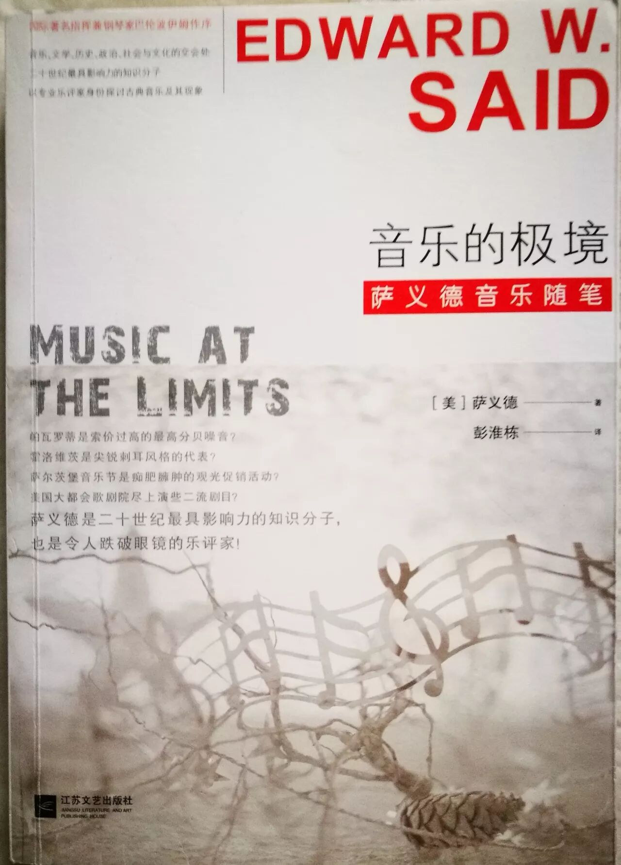《音乐的极境》也许翻译为《音乐的尽头》更贴切一些。人们常说语言的尽头是音乐的开始,而此书的作者却用富于深刻哲理的文字语言来论述和讲述音乐,取名Music at the limits(更准确地说应该是Music at its limits),设想音乐表现到尽头时,他可以用语言来说说。作者取这书名,很风趣。作者萨义德(Edward Waefie Said,1935年11月1日~2003年9月24日)出生于巴勒斯坦,是世界著名文学评论家,理论家,思想家和音乐评论家。他与巴伦博伊姆创办了由阿拉伯国家的音乐家和犹太音乐家组成的西东合集交响乐团,享誉世界,他俩的音乐对话在youtube上也有好几个,值得认真听听。