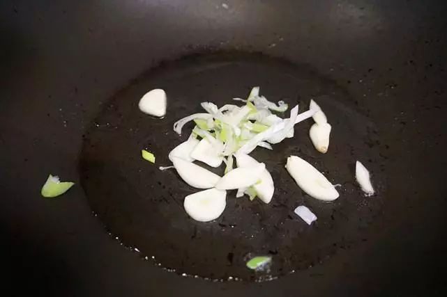 4、坐热油锅,放入1小勺食用油,再放入葱丝姜片爆香。