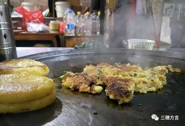 洋芋粑粑是三穗的一种最常见的传统地方小吃。一个简简单单的洋芋(土豆),通过精心的翻炒煎炸,再加上独特的配方辣椒,吃起来外焦里嫩,香脆可口。是三穗地方小吃名副其实的“舌尖”美食。