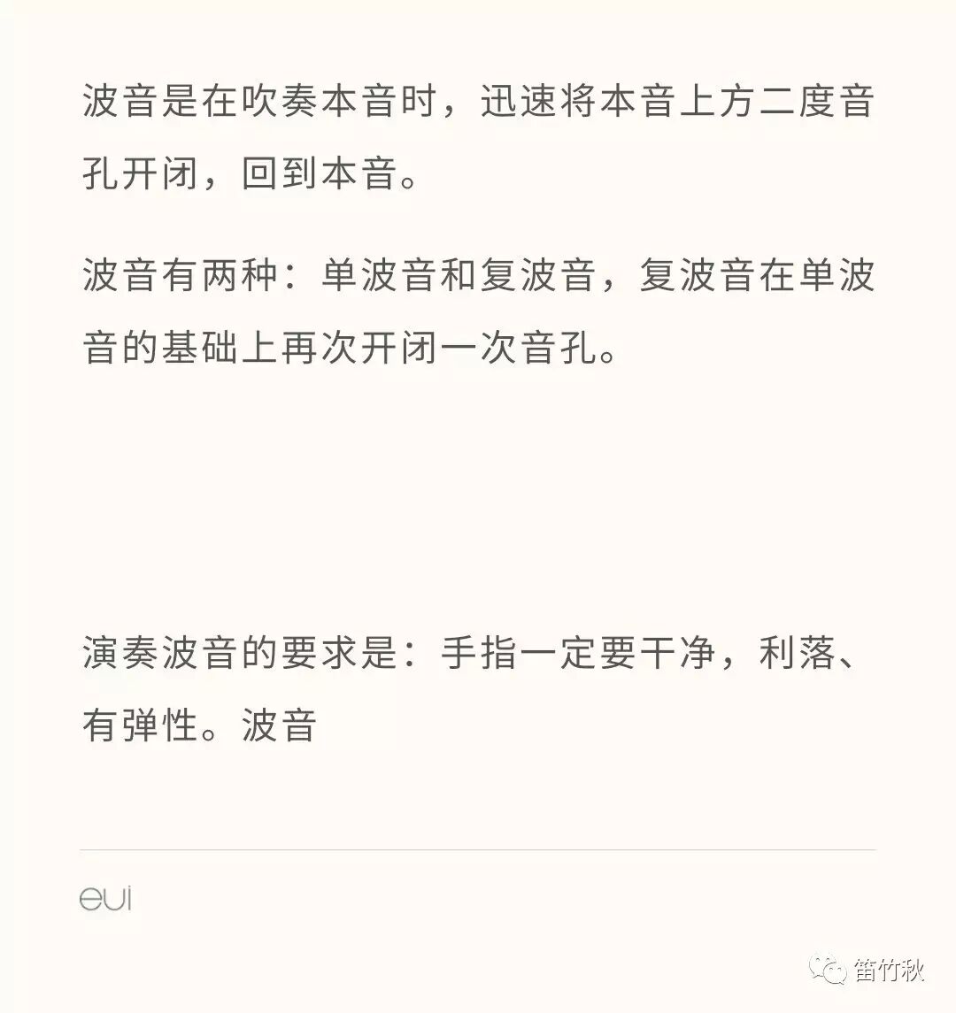 3.波音(w):短颤音的一种,也称涟音,意为主音上方的手指快速颤指跳跃一次。