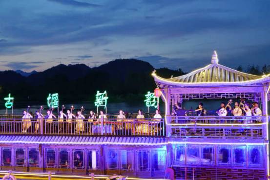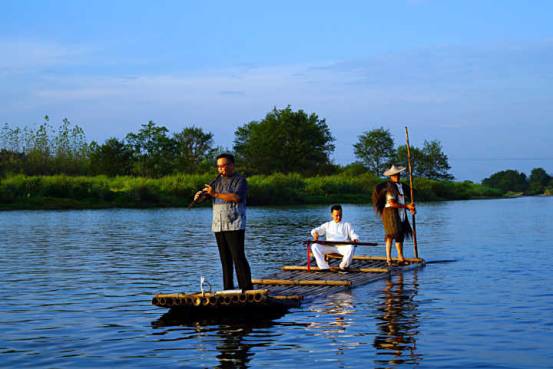 江面波光粼粼、涟漪阵阵,午后的古堰画乡如诗画一般。忽闻江面琴声和笛声交相呼应,婉转悠长。