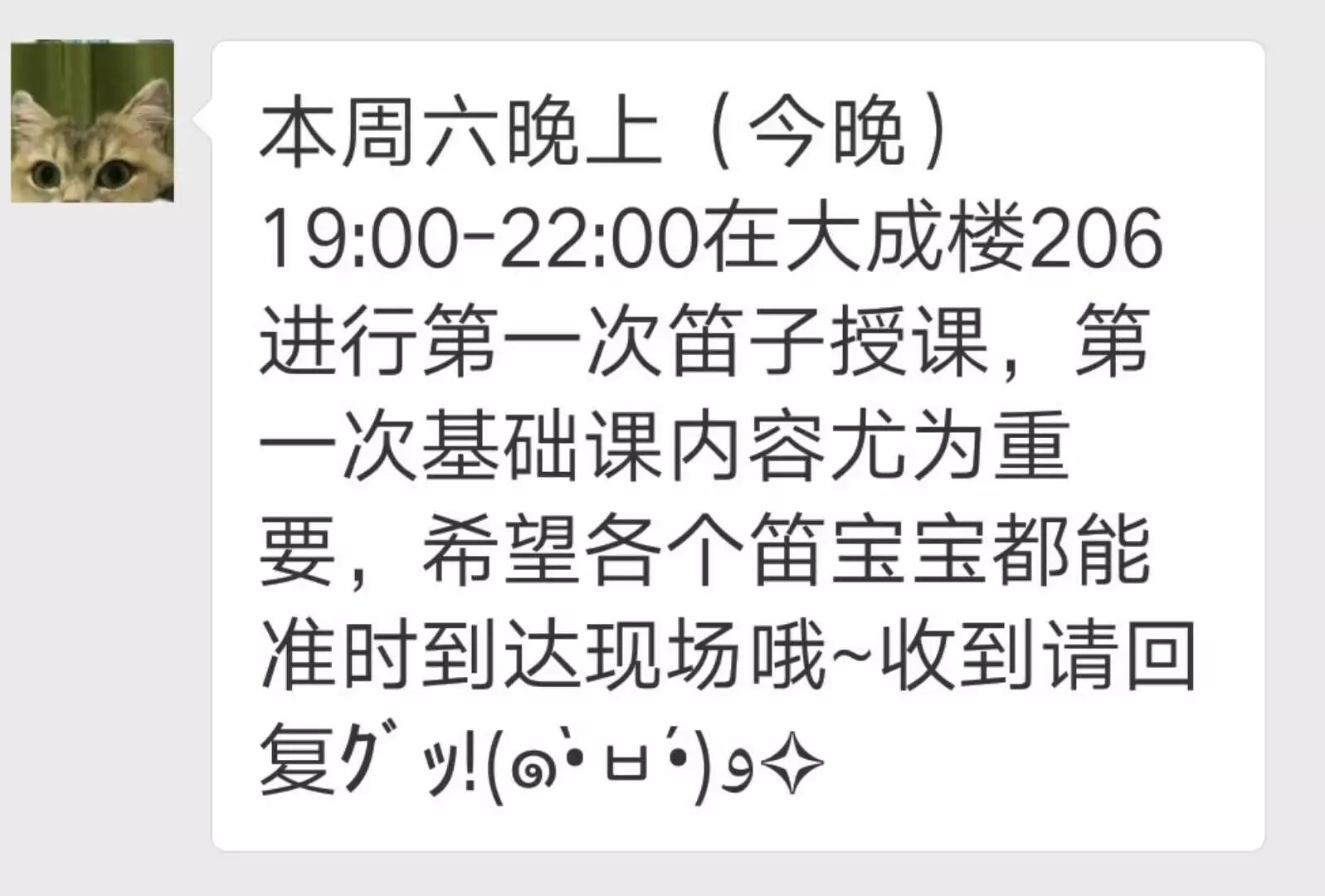 这天晚上的江湾,我们迎来了进入笛协后的第一节笛子课。月牙弯弯,笛声何处起?