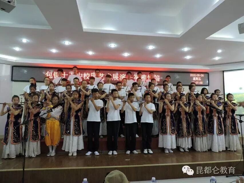 6月27日下午,在包钢十五中与筝雅艺术学校合作免费为学生开设竹笛课程历时整一年之际,学校在报告厅热烈而隆重的举办了包钢十五中·筝雅艺术学校竹笛特色校本课汇报表演活动。活动在音乐梁老师和筝雅艺校左老师的指导下,在初一年级组全体师生的共同参与下获得了圆满成功。教育局体卫艺科王雅凤老师、丁建新校长、冯晋副校长、王海凤副校长、张宇副校长以及筝雅艺术学校其木格校长共同出席并分别为获奖班级颁奖。
