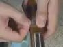 把笛膜裁好,比音孔大些即可,把水滴在阿胶上,
