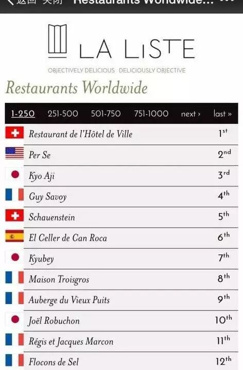 相信大家都很熟悉米其林,但是对La Liste不甚了解,它由法国旅游委员会发起,由法国长亲自发布。可以说是非常权威呢。