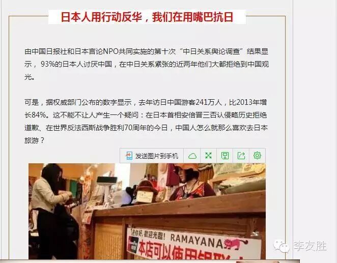 那些疯狂去日本旅游、?如果有一日中国开战,?!是中国人都把这消息往外传播,中国齐心协力抵制歪货、抵制日本的一切!货、抵制日本的一切!本旅游、?如果有一日中国开战,?!是中国人都把这消息往外传播,中国齐心协力抵制歪中国人真没有骨气,日本都策划与中国开战了,我们中国人还去日本旅游,国人愤怒!日本媒体横批中国人是琵琶,傻瓜一样送钱给日本人!