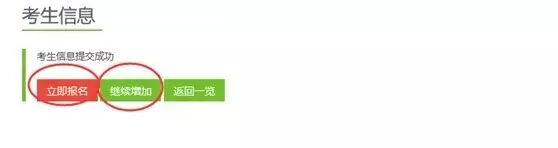 9、 考生填加后,可以立即报名;若还有其他考生的话,可以继续填加!