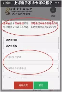 注意:若连报多个级别,选择报考的最高级别即可,系统会自动生成连报(千万别依次选择);证书编号填写已持有音协琵琶考级证书编号。