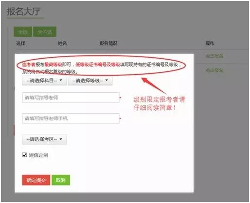 范例:138xxxx1234,张三,初考,欲报名2、3级。