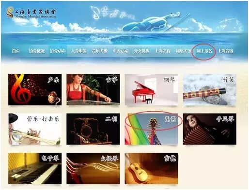 1、 先登录音协官网www.shmusic.org,点击“网上报名”,再选择科目“琵琶”。