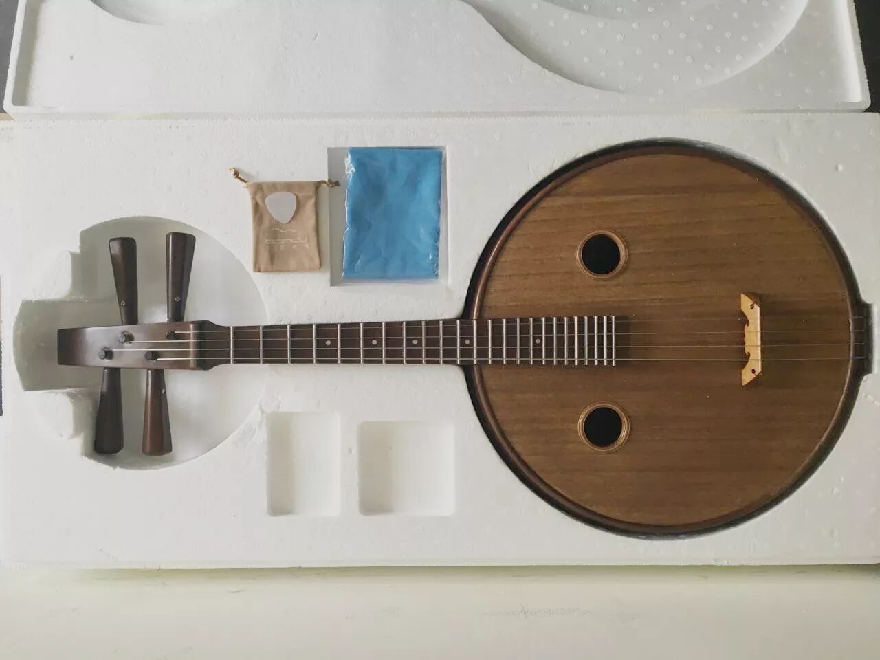 另,音质不纯,有的声音过燥,金属声过大,有的四根弦音质不统一,高把位震动不通透,有的琴体震动不充分等。琴首先是乐器,是为音乐服务的,而中阮是次中音乐器,其淳厚、圆润、干净的音质是主要特性,这也是在声音上区别吉它的重要因素。外形上也是花里胡哨、“标新立异”,缺少淳朴的美感,显得低俗,尤其看着惨白的面板我就受不了,以前我定制的琴都自己用涂料把面板涂旧。看看八十年代之前的琴,现在的琴显得华而不实。