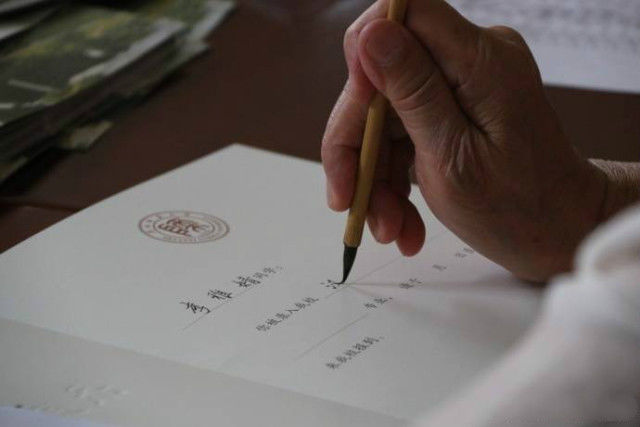 用毛笔书写录取通知书,这些老教授已坚持了11年。