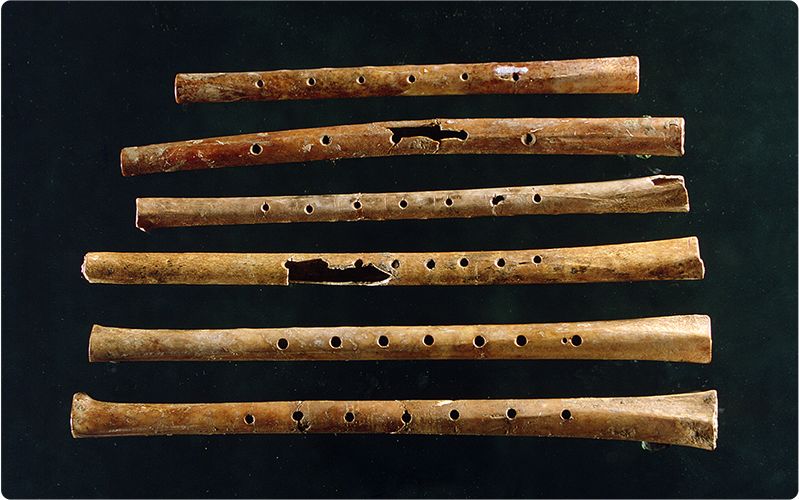 在很久很久以前,我们的祖先将狩猎得来的鸟类的肢骨掏空,在其表面开孔,用于吹奏音乐,这就是我国最古老的笛子,距今已有七千多年了!