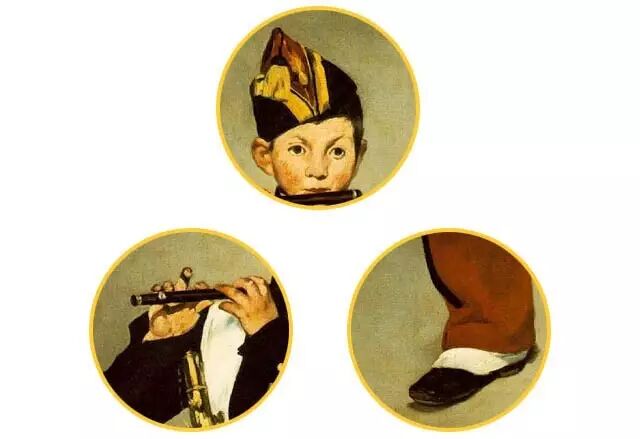 回到开头我们介绍的这幅作品《吹笛子的少年》,一个皇家卫队的年轻轻骑兵正在吹短笛。
