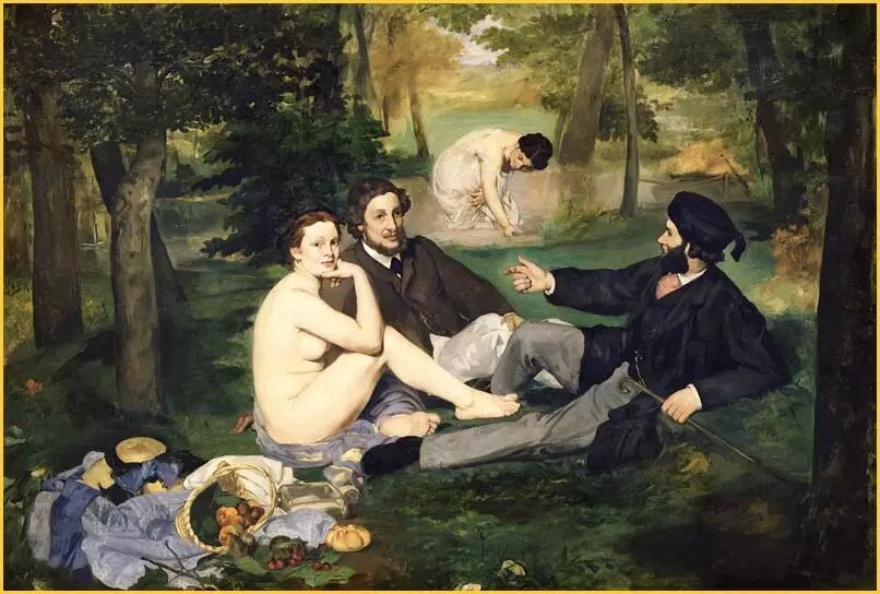 比如这幅《草地上的午餐》,在巴黎引起轩然大波..