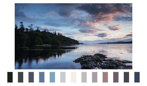 从莫奈画作中提取的颜色,看起来很轻快活泼,冷色系为主,还有一些温和的暖色。