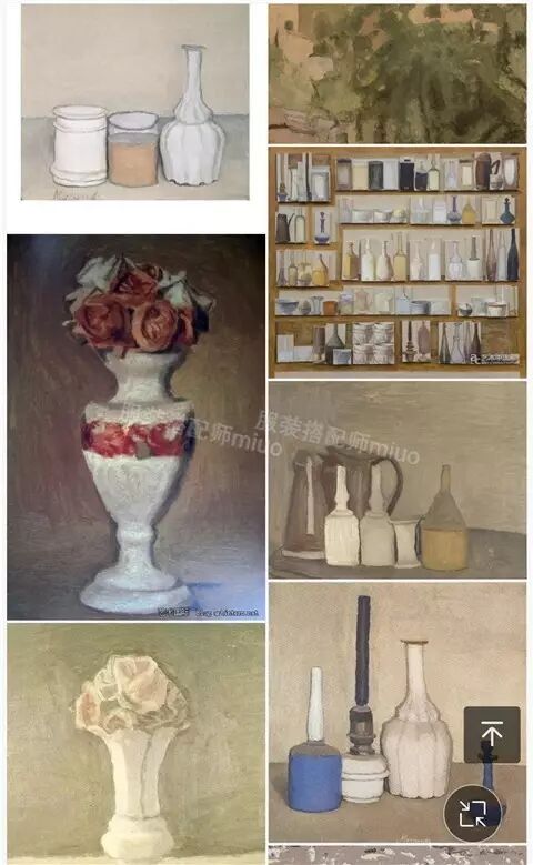 因为近年来冷淡风很火,很多同学以为冷淡风就 = 黑色、白色、藏蓝。 那时,我想起以前读书时,我们美术老师说过,“莫兰迪就是高级灰”。所以 我去年写了《 莫兰迪色调,让你的搭配更有质感》,教大家从莫兰迪的画作中,提取颜色,运用到服装搭配上。