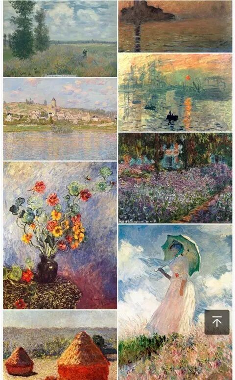大家可以感受下,这些随机截屏的莫奈作品,在色彩上,和上面的莫兰迪,有什么不同的感觉呢?
