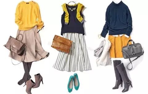 如果运用到日常服装搭配中,加上黑色、白色、灰色的调和,基本就会是下面这样的感觉: