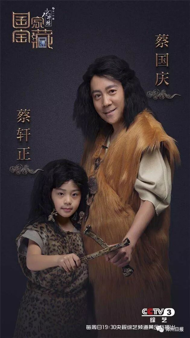 蔡国庆父子身披兽皮亮相,推介词为“千年文脉,传承不灭。温情传递华夏初音!”