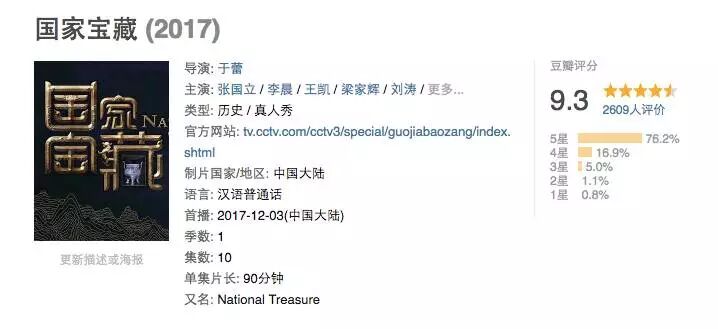 12月3日晚,《国家宝藏》在央视综合频道首播,一开播就拿下豆瓣9.3分!