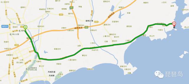 ①海阳市留格庄镇留格庄村立交桥下高速-------左转海核一路------第一个红绿灯左转风霞线------桃源村 和谐家园大石头沿左侧直走------沿环山路约2公里到达目的地