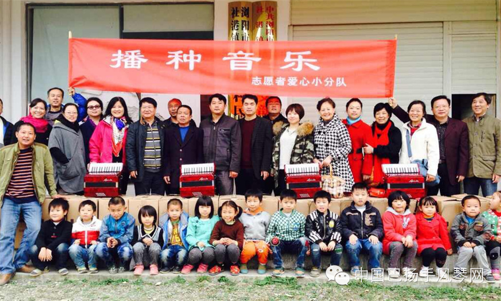 2014年11月15日,郭伟湘先生与16名湖南省音乐自愿者来到湖南浏阳社港双狮坪中学和周洛村小学,赠送20台全新18贝司手风琴、援助25台48至120贝司手风琴。郭伟湘先生将在双狮坪中学和周洛村小学免费义务支教两年,郭伟湘先生亲自授课,目前这两所学校共有约790多名学生。