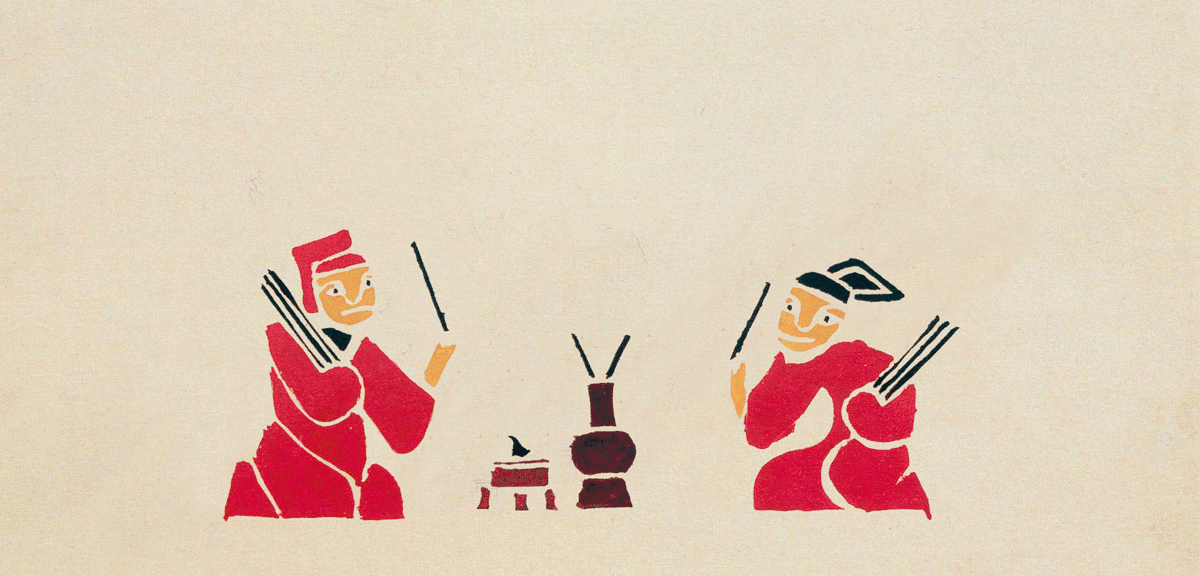 五代南唐画家顾闳中的传世名画《韩熙载夜宴图》,详细描绘了当时的名臣贵族韩熙载家夜宴的歌舞场面。