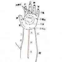 天河水穴在前臂掌侧正中,自腕横纹至肘横纹成一直线,属