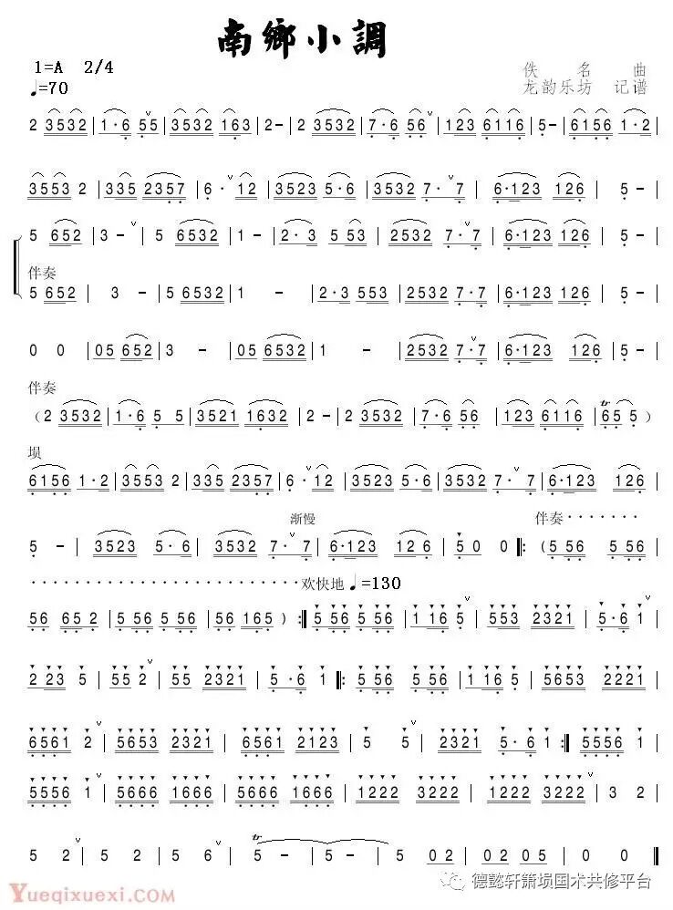 这是一首以南方民间小曲为素材创作的,富有浓郁民间风格的埙独奏曲。