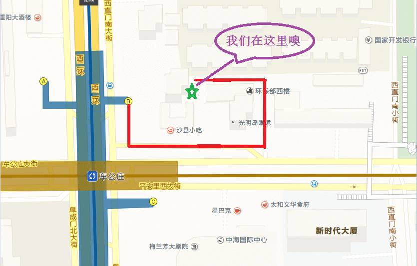 地铁2号线【车公庄站】下车,B口出,前行15米后左拐,遇第一个路口(鱼雁胡同)后再左拐100米,直行到头,遇一铁栏杆后,再左拐到头(左边有个玻璃门,进来即可)即到——新街口南小街社区服务站活动中心(尽头有个蓝色的警务牌子)。通俗点说,就在梅兰芳大剧院的对面!