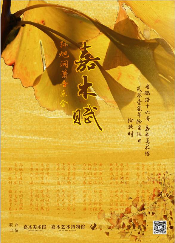 孙旭洞箫主题音乐会可免费到场鉴赏,除了嘉木主题曲《嘉木赋》,届时还将将演奏洞箫经典曲目《春江花月夜》等作品。本活动不预留座位,按到场先后顺序选座,期待你的到来!