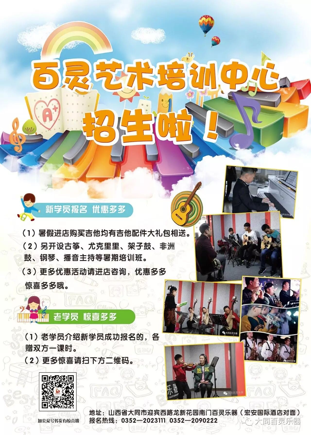 开设课程:钢琴、吉他、尤克里里、架子鼓、小提琴、长笛、单簧管、萨克斯、二胡、琵琶、古筝、声乐等