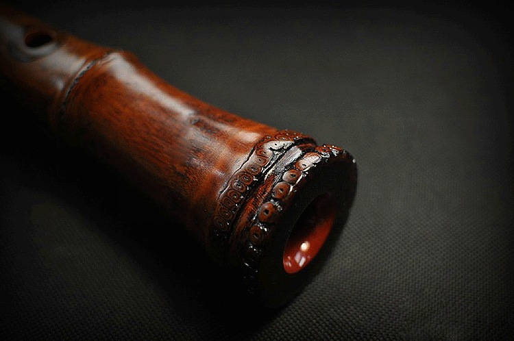 尺八,这种源于中国类似于箫的竹制管乐器,其形制可追溯到秦汉,隋唐时成熟,以管长一尺八寸而得名。它的新月形吹口,比洞箫宽,中空,两端通透无笛塞,更无膜、哨、辅助发音,全靠唇形和角度控制气流发音。