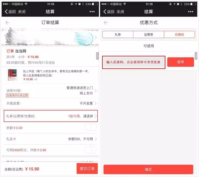 优惠码使用小Tip
