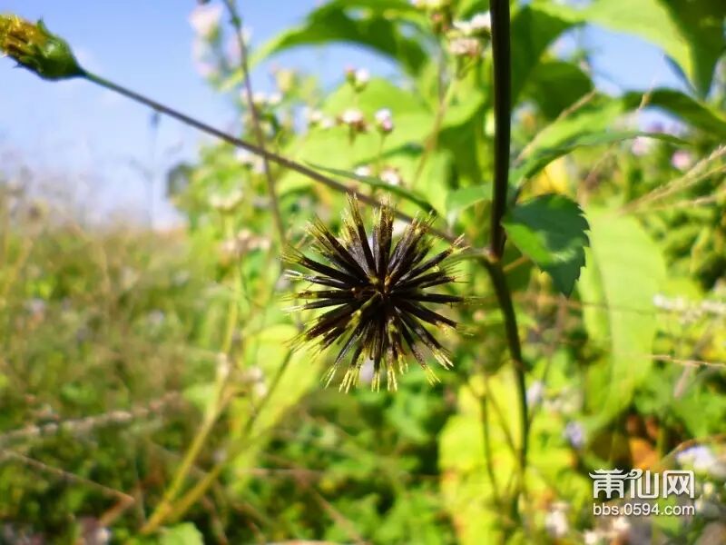 这货叫鬼针草,童年的阴影啊有木有,那个刺都是挂得满身都是,拔得那叫一个心累。不过小时候家里经常用这草烧水喝,降火。