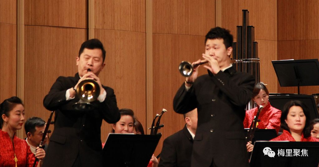 或许大家还沉浸在王甫建老师改编的良宵中,心中的旋律分明先快,却又被胡晨韵、闫晋龙演奏的双唢呐与乐队配合的《恭喜发财》吸引了。双唢呐的演奏可谓是惟妙惟肖,音律丰富,迎来了观众们热烈的掌声。