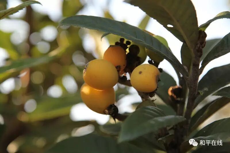 还没有熟的枇杷果挂在树上,等待着村民将它摘下来... ...