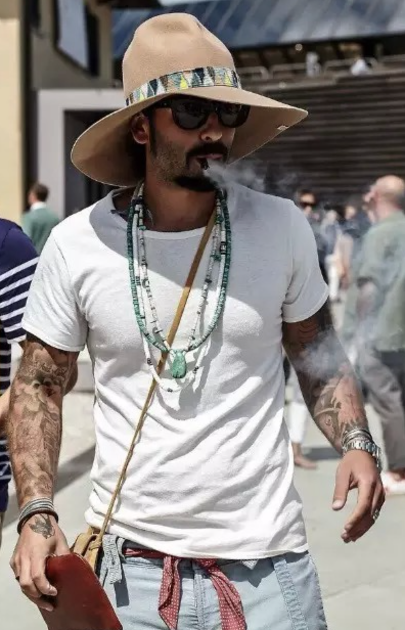 纯色T恤 花臂 胡子一定要有
