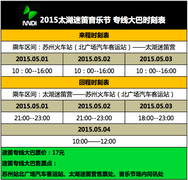 公园内部将提供100个青旅床位供乐迷休息,青旅为公园自营(网上查不到)上下通铺床位,每人每位床位价格为30元,并提供24小时热水供大家洗漱。 附近酒店住宿可至庙港或者七都镇,小编实地考察标间100元左右(五一有可能涨价)住宿条件一般,需提前预定。 苏州市区住宿可选择观前街商圈,火车站商圈,石路商圈,我们将设立专线大巴供乐迷散场返回苏州火车站。