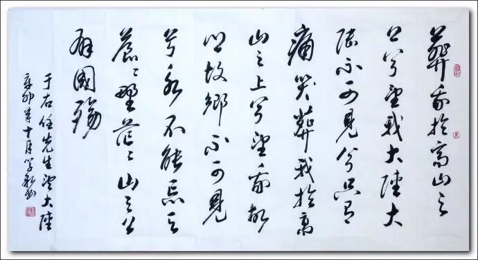,,。于右任1949年被裹挟到台湾孤岛,晚年备感孤寂,十分思念大陆与故乡。《望大陆》写于1962年1月24日,即于右任逝世前两年,这是一篇以思念故乡渴望祖国统一为主题的杰作。