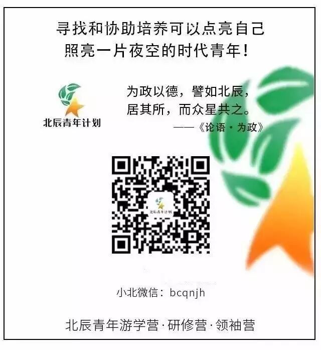 为了让更多的北辰青年找到与己契合的活动、契合的明师、契合的修学方法,北辰团队正在调动更多优质资源来推动北辰国学课程的丰富,为有文化诉求的青年同道提供一方平台。德不孤,必有邻;分担分享,共同成长。