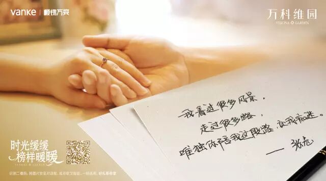 找准意见领袖才能事半功倍,每一个圈层中都有核心人物、意见领袖,这些重量级人物的意见和建议,对其圈层客群有很大影响,而且具有很强的号召力。这次万科·维园通过“走出去”,寻找社会名人,从广播电台到媒体网站总经理,再到汽车4S店老总,以他们爱人的角度拍摄了三组照片,以这些夫妻间感人的故事为出发点: