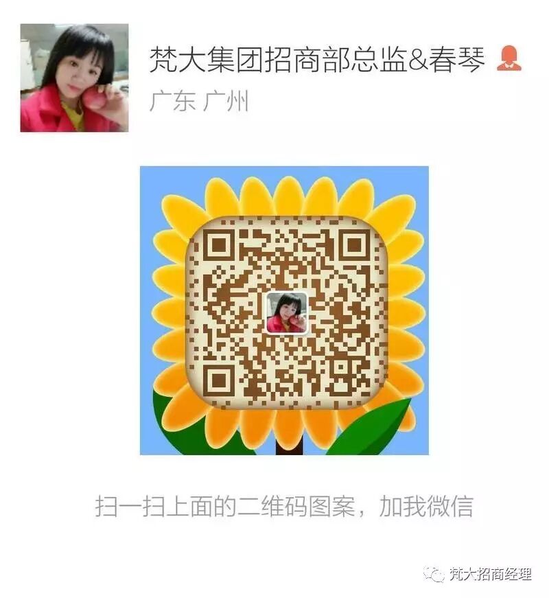 哈喽!大家好,我是梵大集团招商部春琴!官方微信:13535573733.