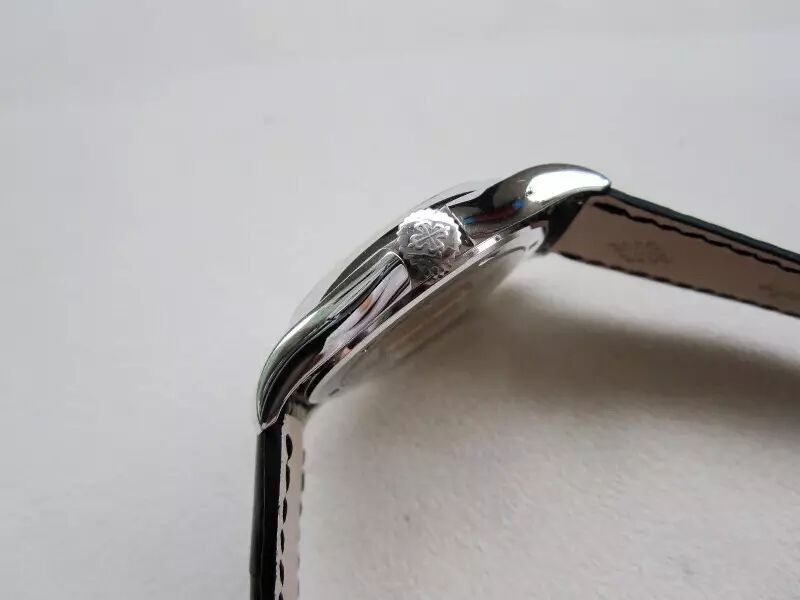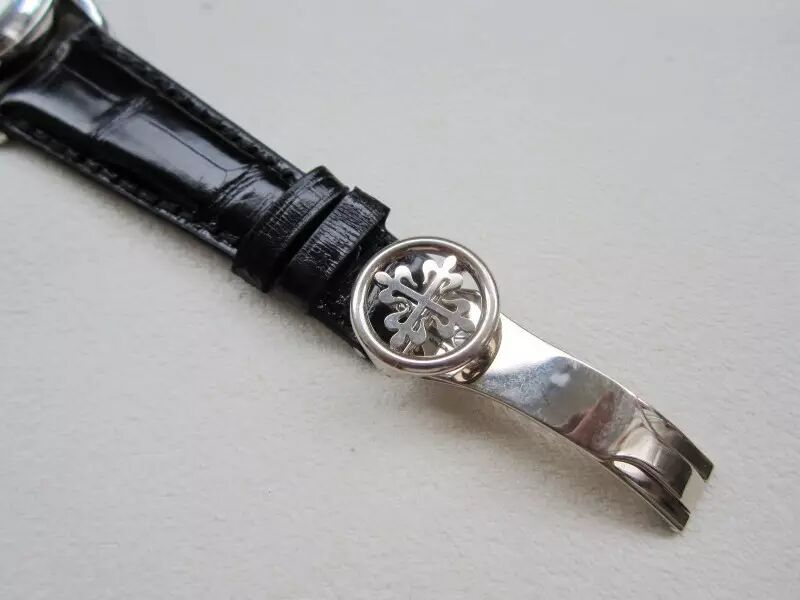 表带材质:原装18K白金灯笼折叠表扣 后配全新顶级鳄鱼皮表带