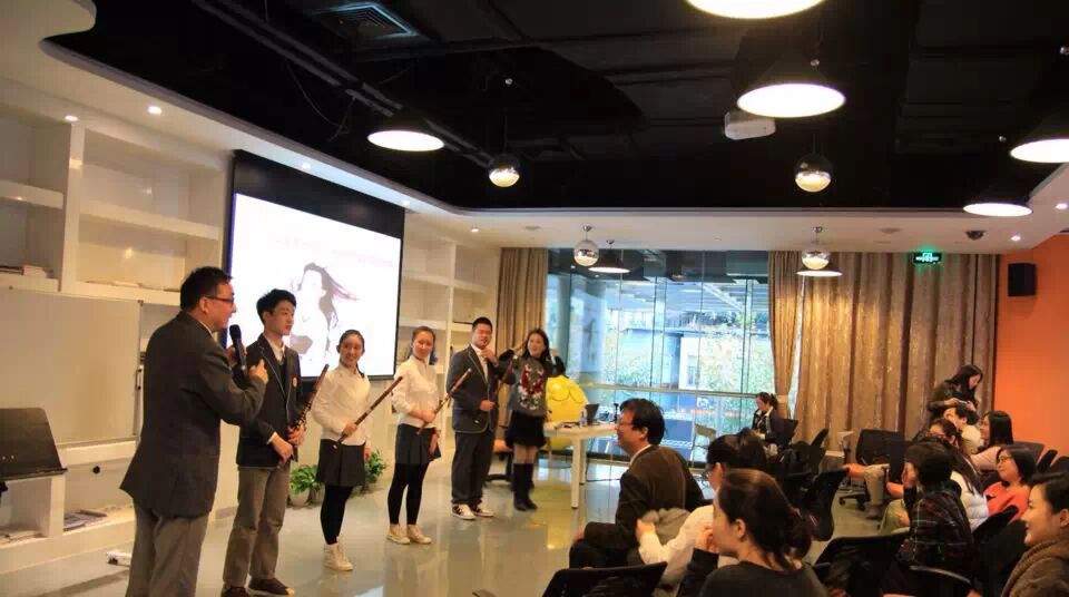 今天非常高兴跟上海电视台这么多朋友相聚在一起,度过一个愉快的下午,希望通过我的讲解和孩子们精彩演出,大家能够对民族乐器笛子有一些了解,并喜欢上我们的民族乐器,喜欢上我们的竹笛艺术。